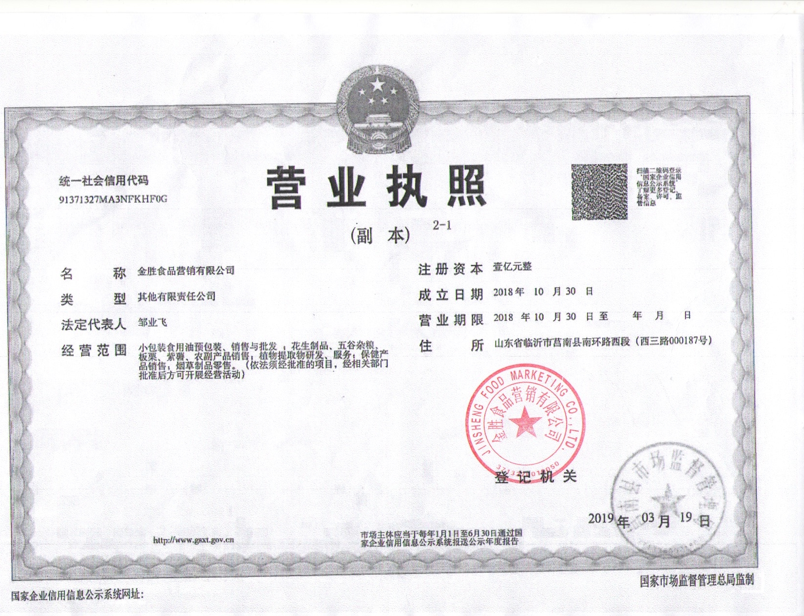 金胜食品营销有限公司